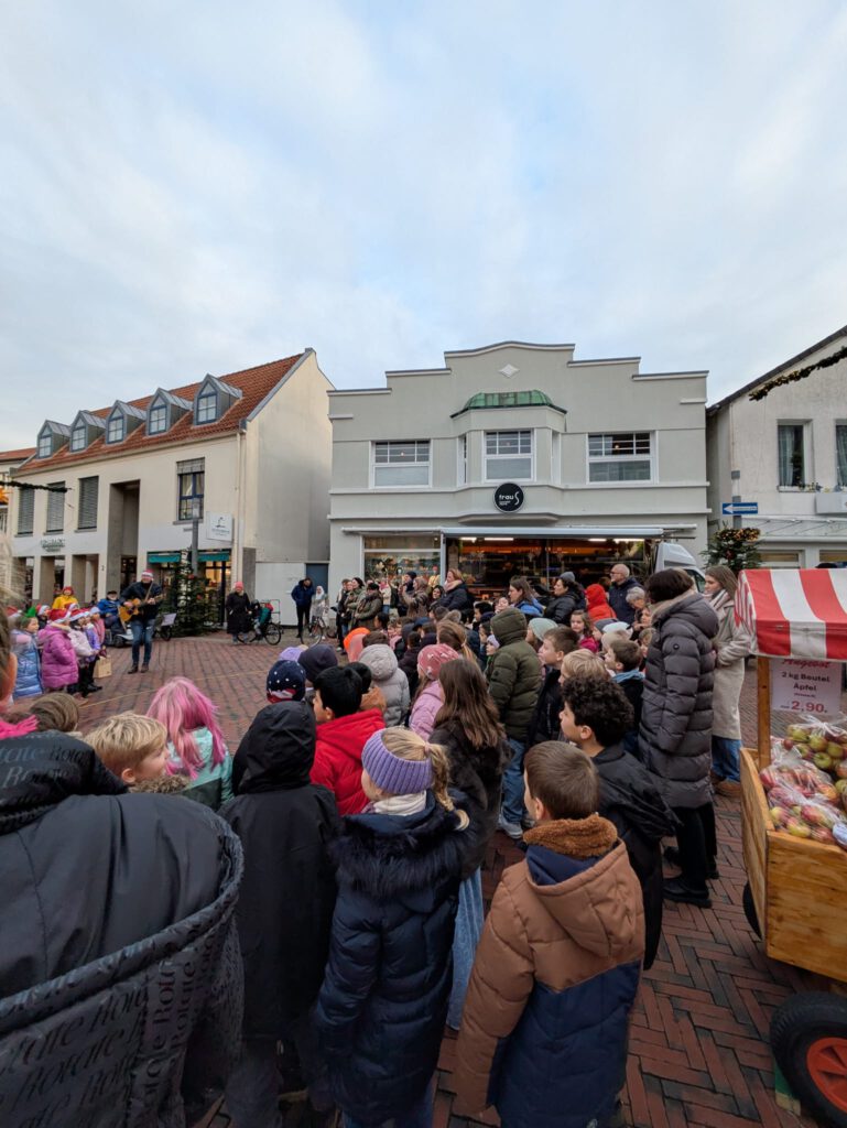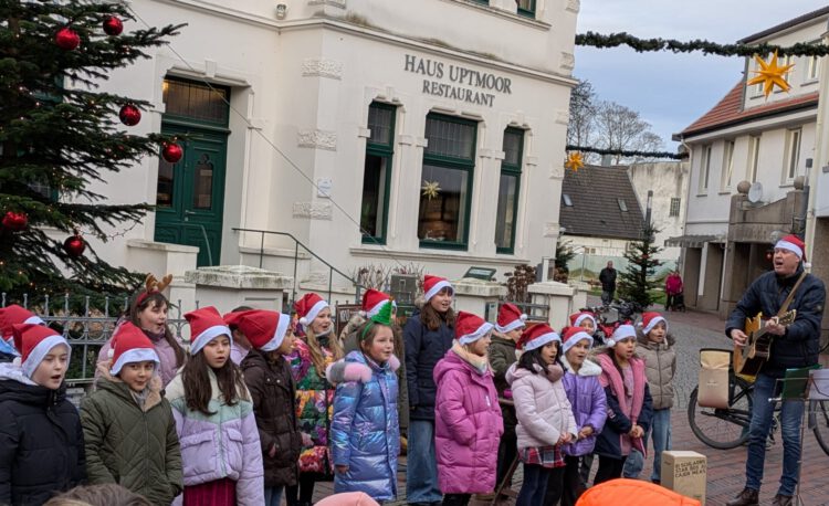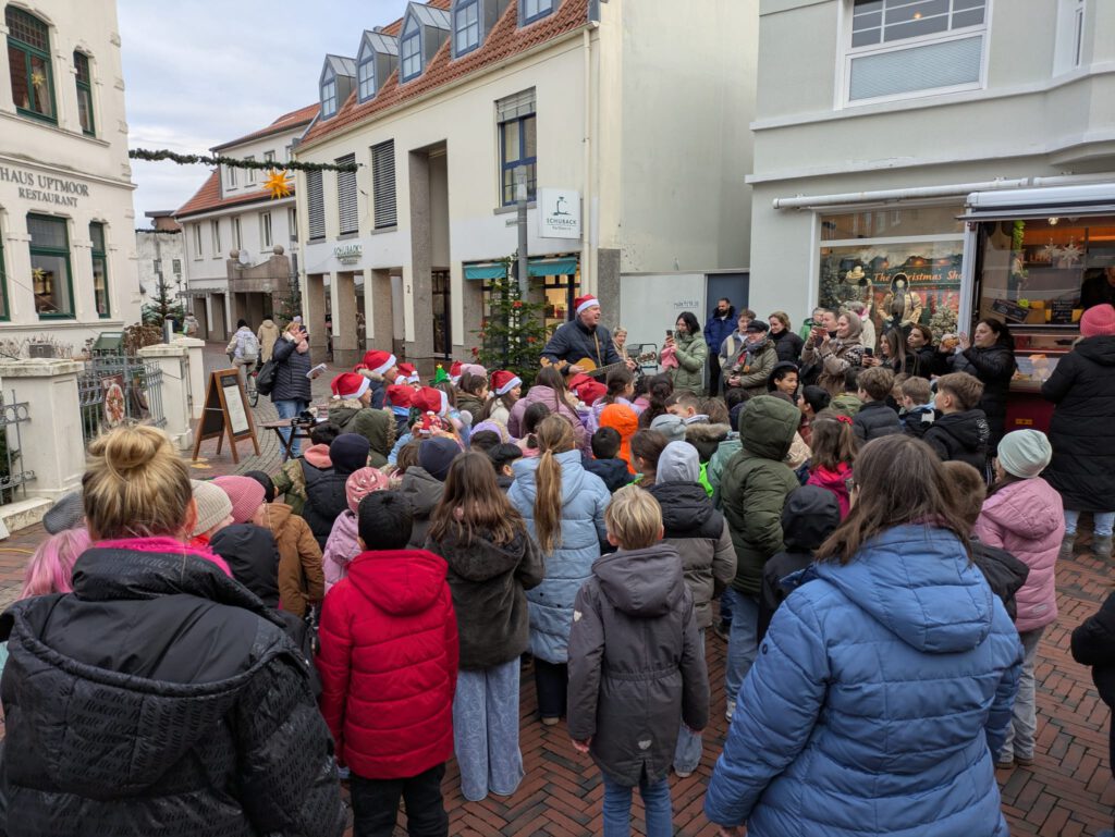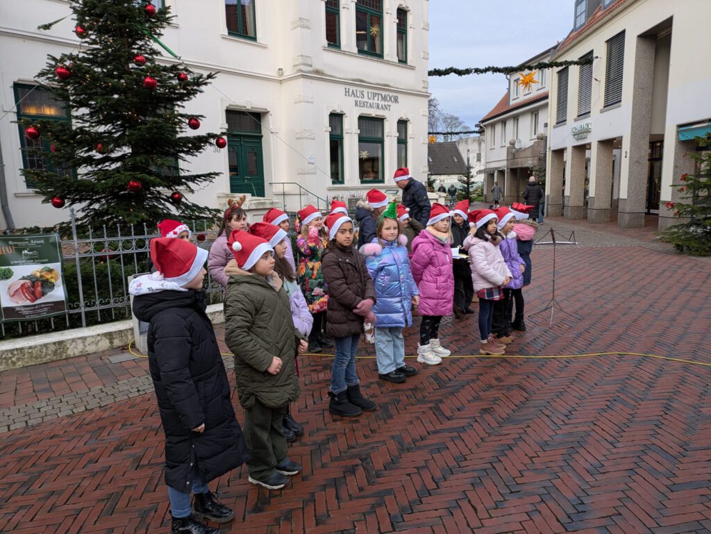 Auf dem Lohner Wochenmarkt traten die Kinder vor Publikum auf und stellten ihr Talent unter Beweis. Mit den Liedern „Macht euch bereit“ und „Rudolf, das kleine Rentier“ sorgten sie für eine schöne Stimmung und begeisterten die Zuhörerinnen und Zuhörer.