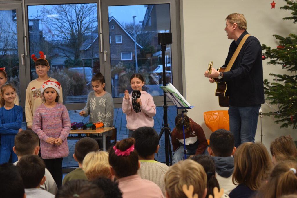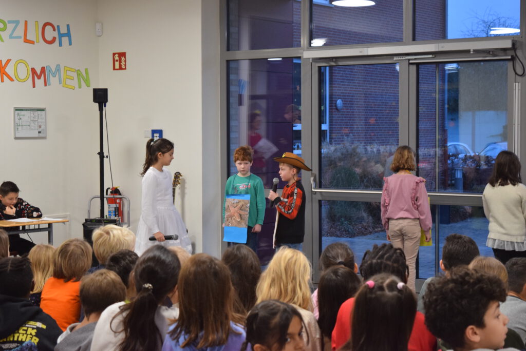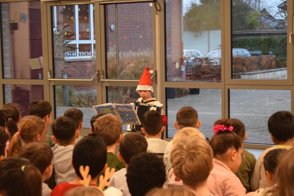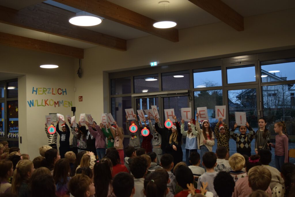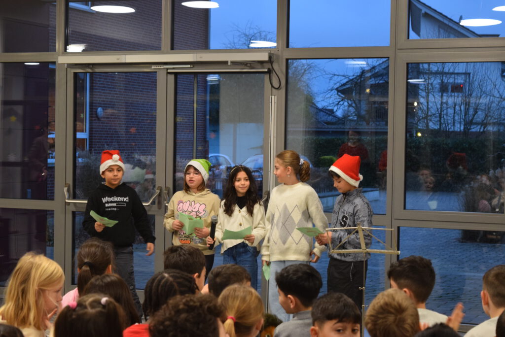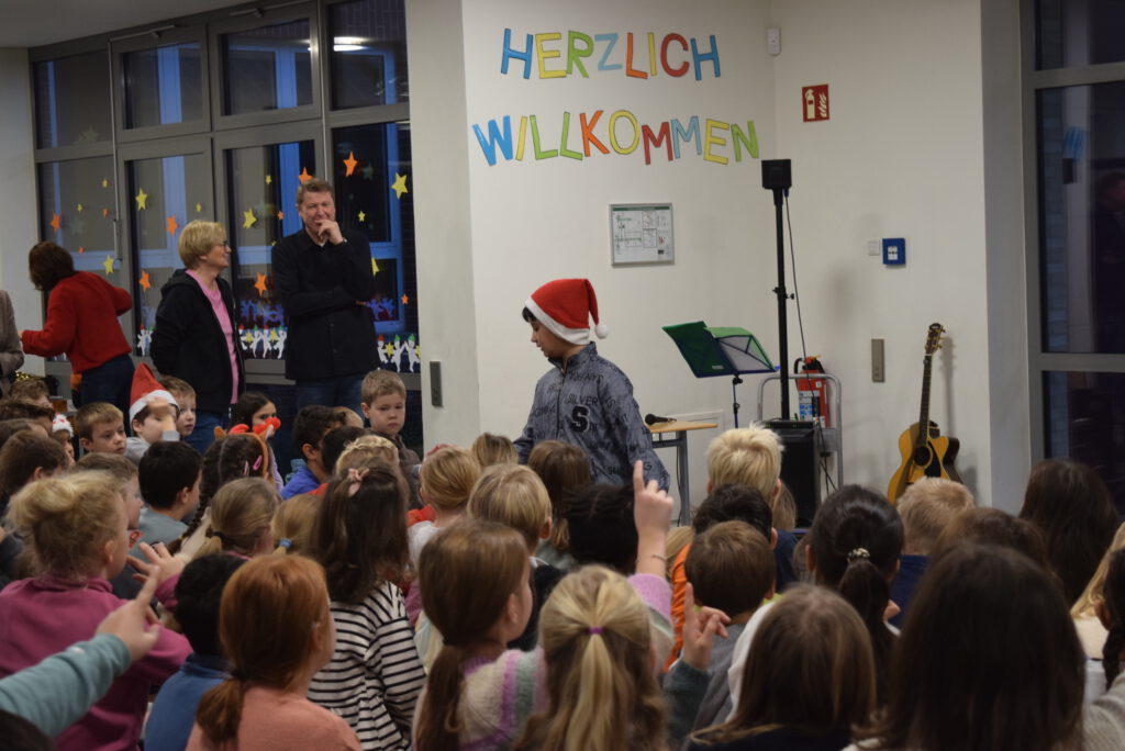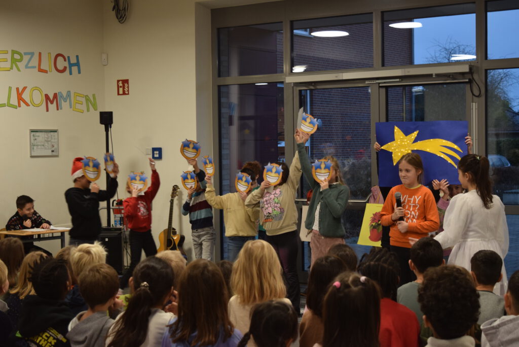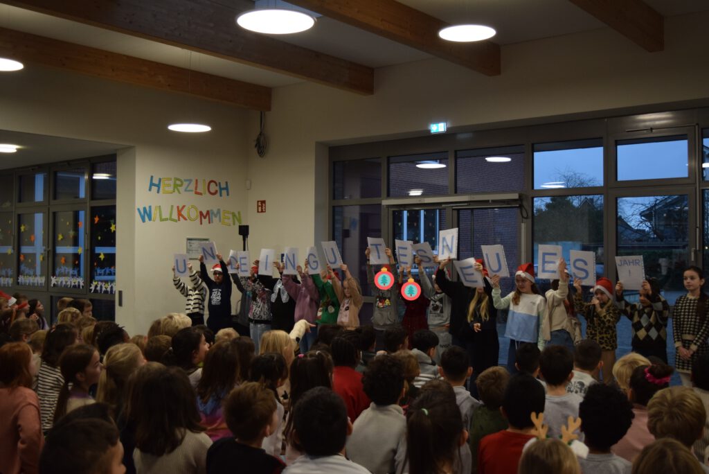 Am letzten Schultag fand unsere gemeinsame Weihnachtsfeier statt. In festlicher Atmosphäre wurden verschiedene Beiträge aufgeführt. Diese reichten von Gedichten über Witze bis hin zu kleinen Theaterstücken und musikalischen Beiträgen, die die Kinder eigenständig auf Instrumenten vorgespielt haben. Mit viel Freude und Mut standen die Kinder auf der Bühne und sorgten für schöne Momente.