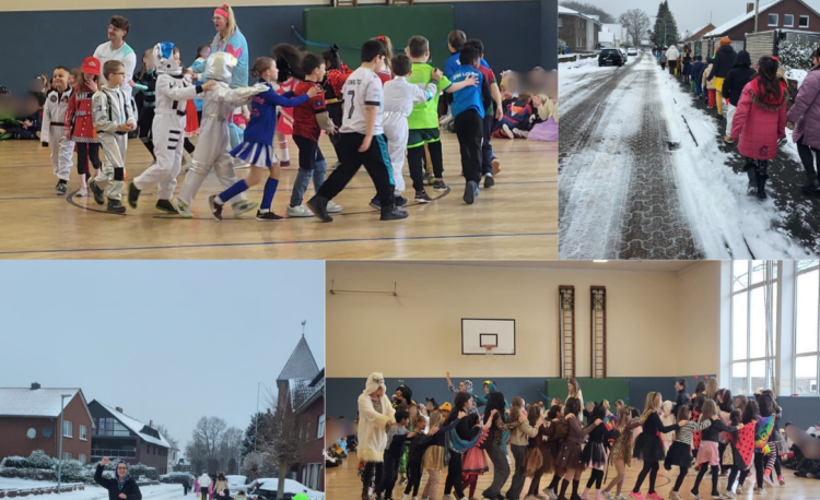 Am Montag wurde bei uns in der Schule kräftig Karneval gefeiert! Trotz des kalten Wetters ließen sich die Kinder die gute Laune nicht verderben. In fantasievollen Kostümen zog unsere Schule beim traditionellen Umzug durch die Straßen.